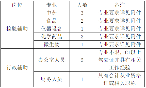 根據(jù)工作需要,大同市食品藥品檢驗檢測中心委托大同市勵瑞勞務(wù)派遣有限公司招聘檢驗輔助人員10名,行政輔助人員3名,用工形式為勞務(wù)派遣,現(xiàn)將有關(guān)事項公告如下: