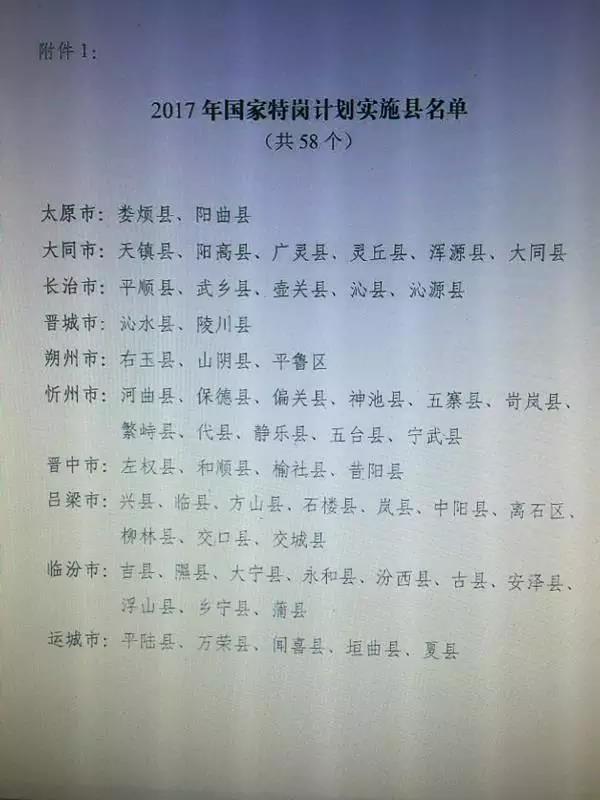 山西省2017年58個縣將招聘特崗教師