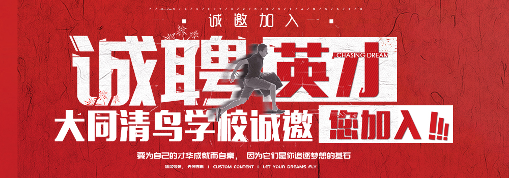 您當(dāng)前的位置:大同人才網(wǎng) >> 大同人才網(wǎng)招聘信息 >> 大同市清鳥精英教育培訓(xùn)學(xué)校2025最新招聘信息
